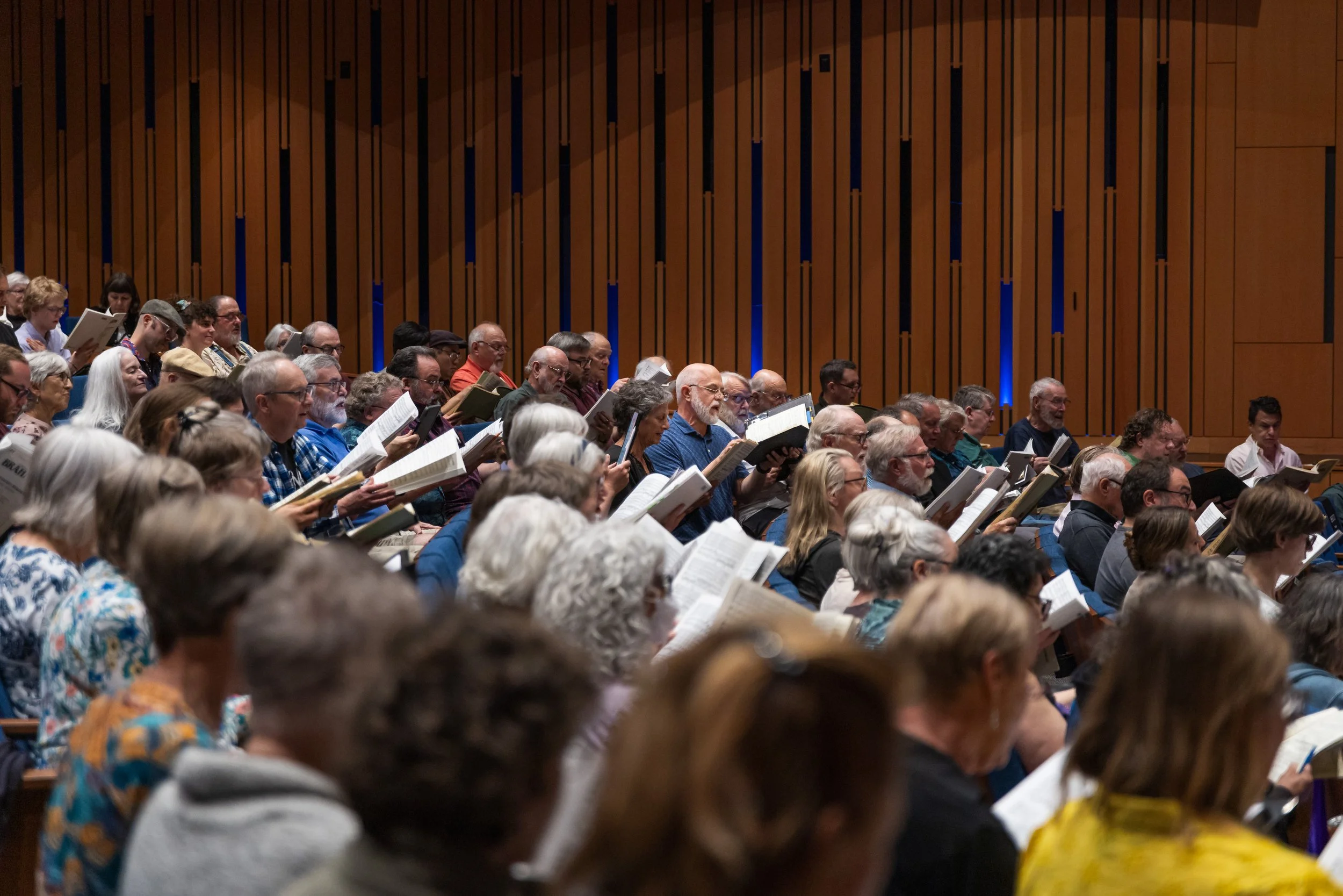76 singers of the Portland Symphonic Choir joining the instrumentalists of the Oregon Symphony
